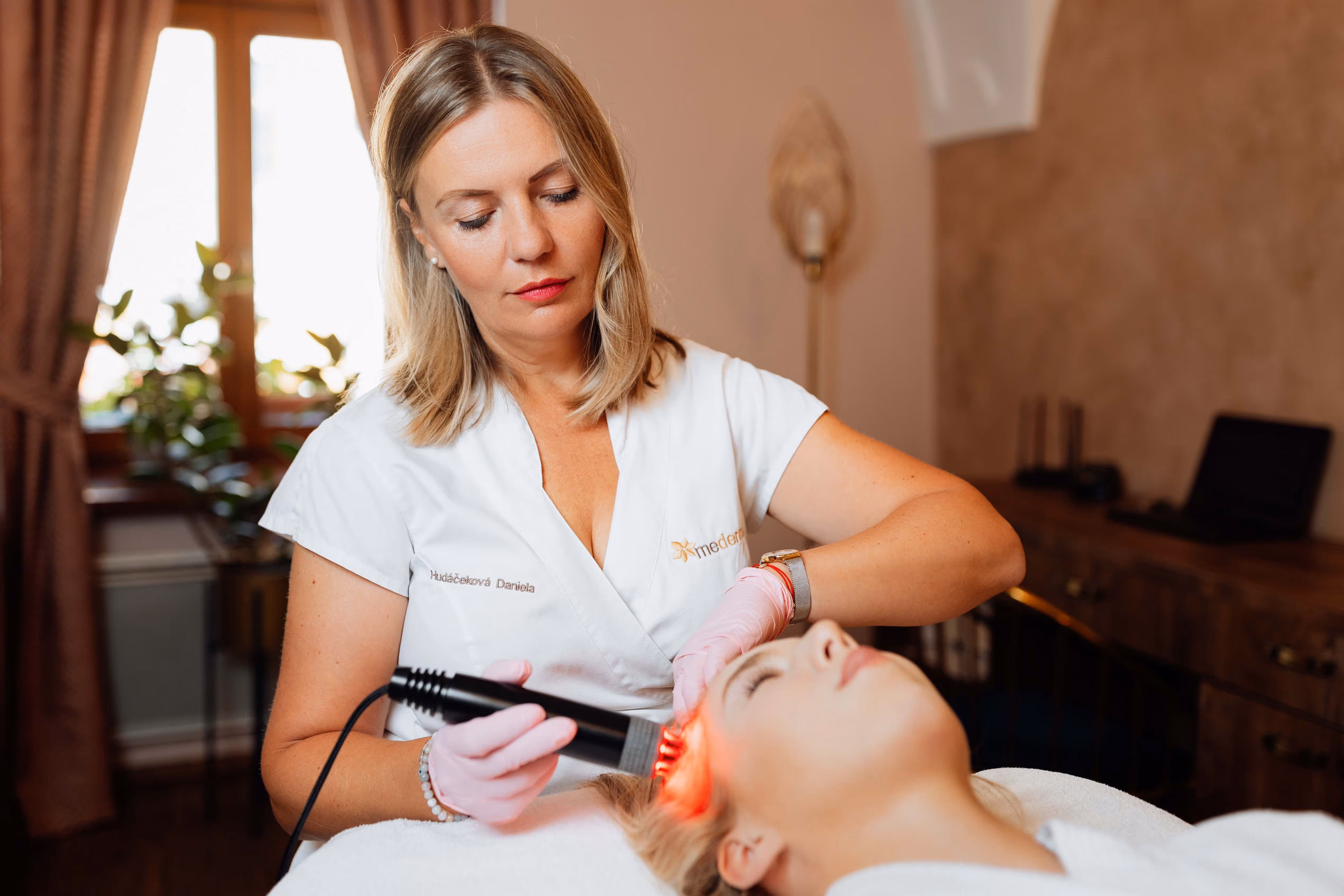 - Využitie fotobiostimulačného efektu LED svetla podporujúce tvorbu kolagénu a elastínu v pokožke a zlepšujúce vzhľad ošetrovanej oblasti.